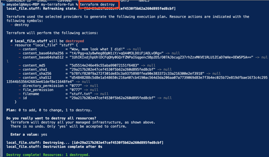 When you are done playing around, you can destroy the resources to keep your machine clean.