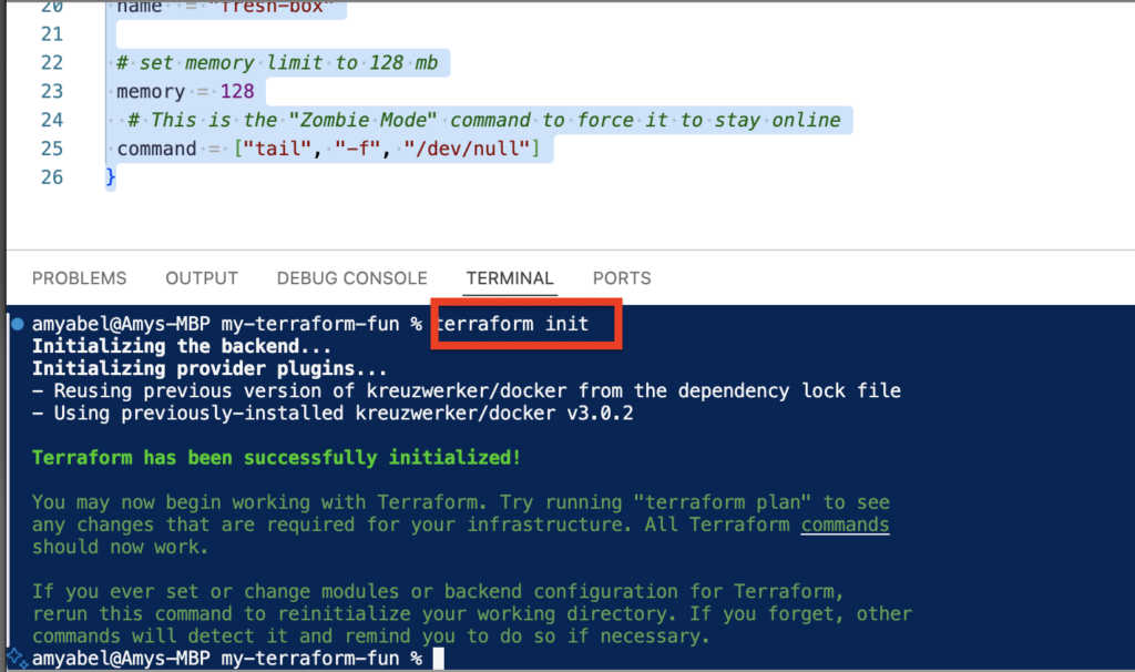 Note: If terraform plan says “No changes,” it usually means you forgot to save your main.tf file. Hit Ctrl+S and try running the plan again.