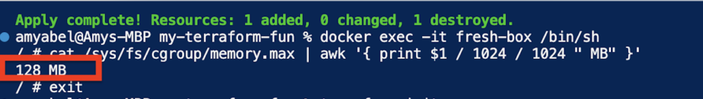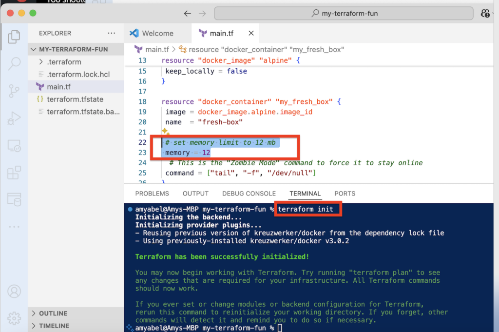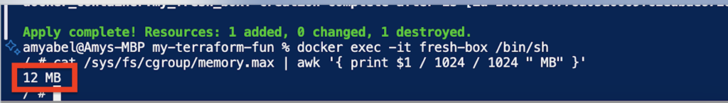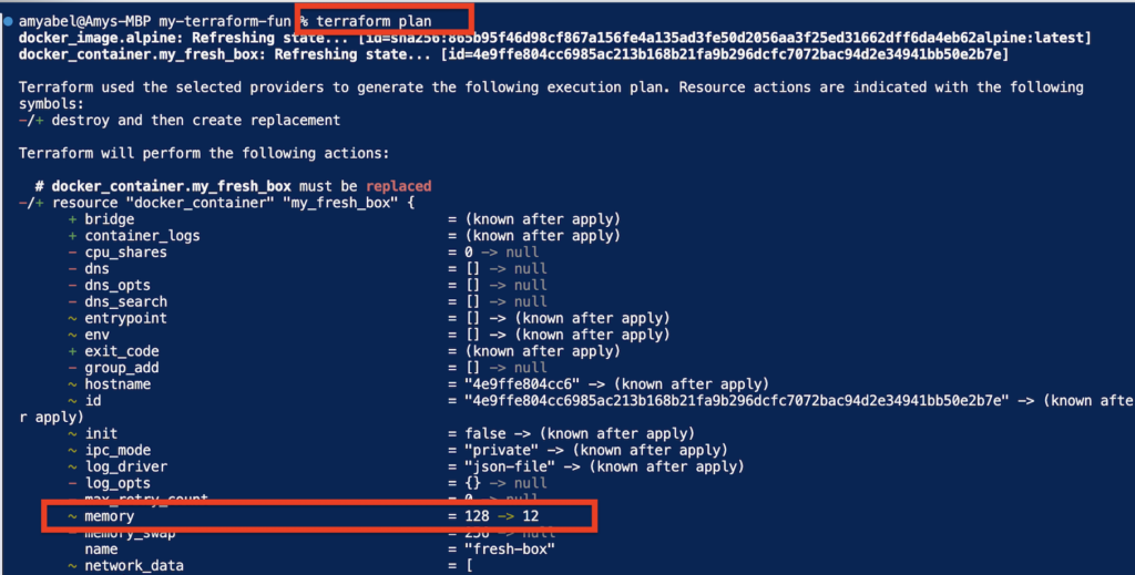 - Modify your main.tf file and change the memory value from 128 to 12.