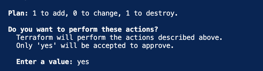 Type “YES” when prompted. You should see a success message indicating one change was made.