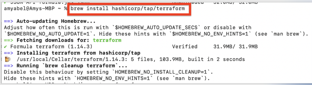 We will use Homebrew for the installation. Open your terminal on your MAC and run the to install terraform.